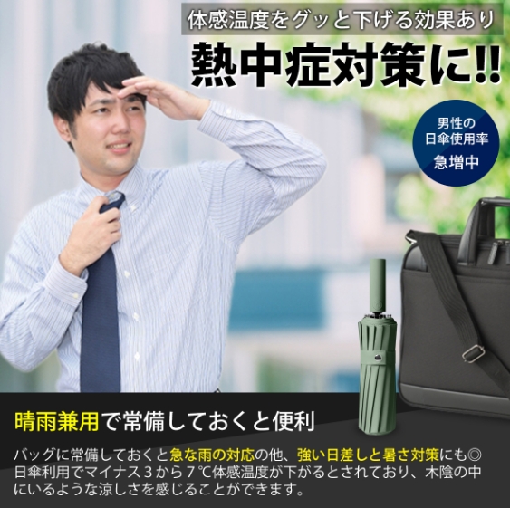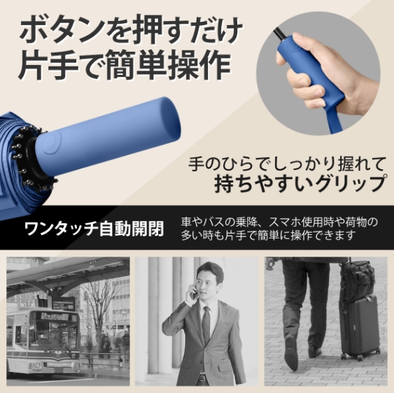 【ワンタッチ自動開閉】裏側に遮光性バッチリなブラックコーティングを採用し、日差しの強い日も太陽光を通さずにカットし、紫外線から肌を守ってくれます。暑い季節で日傘として利用可能。ボタンを押すだけで片手でもサッと簡単に開閉できるワンタッチ式折りたたみ傘で、手荷物が多いとき、車やバスなどの乗り降りの際にとても楽です。カバンや車の中に常備していると大変便利です。
