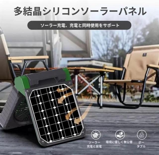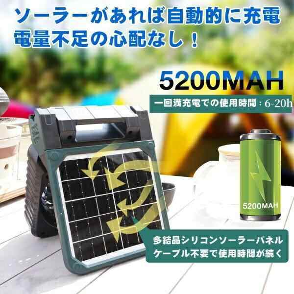 【2WAY充電式扇風機】多結晶シリコンソーラーパネルを利用して太陽光で充電できるからアウトドアの電源がない場所でも涼しい風を続けて楽しめるソーラーファン。電力不足の心配がない!電気代節約で環境にも優しい。自宅ではType-C充電が可能で、5200MAHの大容量バッテリーで一回の充電で6−36時間使用できます