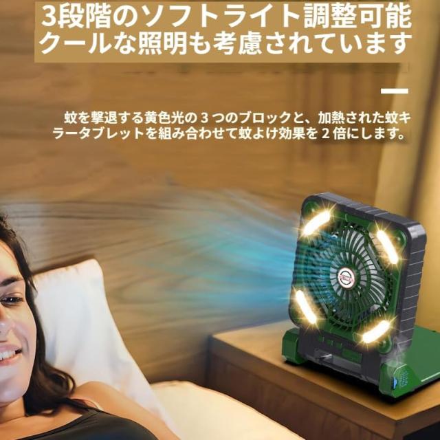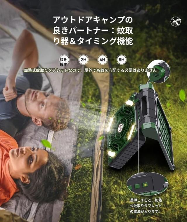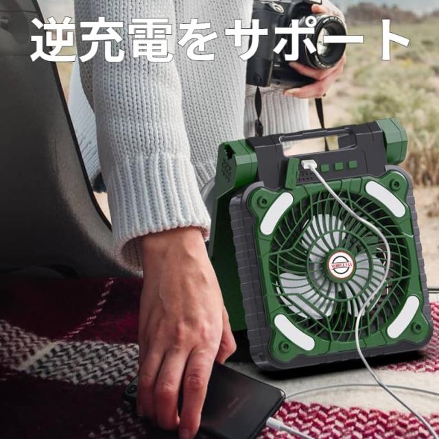 【多用途】LEDライトを搭載し、キャンプライト、屋外扇風機、テント扇風機、携帯扇風機、バーベキュー用壁掛け扇風機、夜釣り、キャンプ、停電時や非常用照明としても使えます