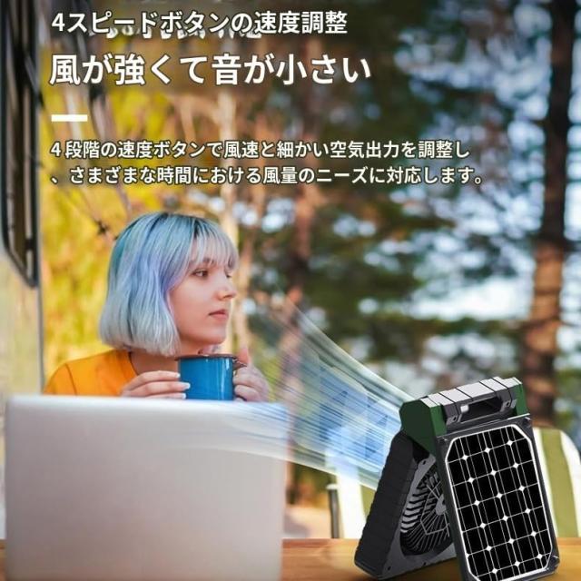 4in1ソーラー扇風機 キャンプ 扇風機 ソーラー充電 2H/4H/8Hタイマー機能 4段階風量調節 大風量 Type-C充電式 小型 サーキュレーター 扇風機 卓上扇風機 折り畳み 持ち運び便利 暑さ対策 アウトドア キャンプ 登山 釣り 車中泊 家庭用 停電 防災用