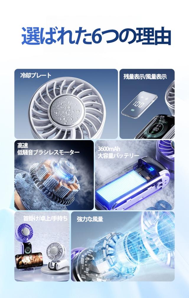 新型モーターは強力な気流、低騒音、高回転を実現した。一台多役の小型扇風機として、手持ち、卓上用、首掛けのシーンで使えます。夏に欠かせないアイテムです。より快適な夏をお楽しみいただけます。