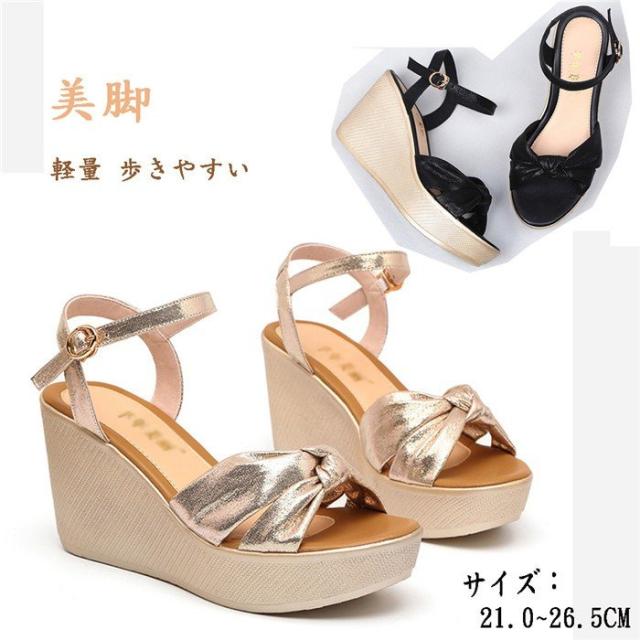 サンダル ハイヒール オープントゥ ウェッジヒール 厚底サンダル 小さいサイズ 大きいサイズ ローマサンダル ヒール9cm 黒 ゴールド 21.0~26.5cm di695c0c0m5