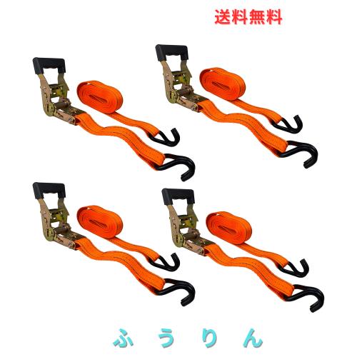 HFS(R) ラチェット式ベルト 荷締機 4個セット 破断強度1.35t 荷締めベルト 使用簡単 締付固定 多用途 引越し 引引き運搬用 ラッシングベ