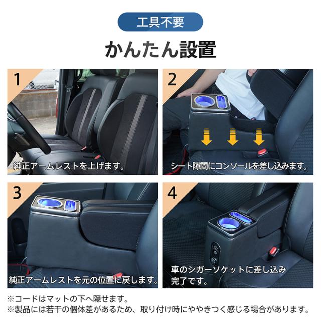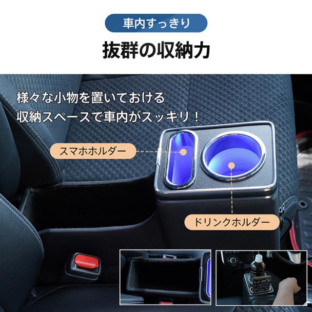 コンソールボックス タント タントカスタム TANTO LA650S LA660S 専用設計 LED ライト センターコンソール カー用品 車 パーツ 内装 収納ボックス ドリンクホルダー スマホホルダー PVCレザー シガーソケット 小物入れ ee423