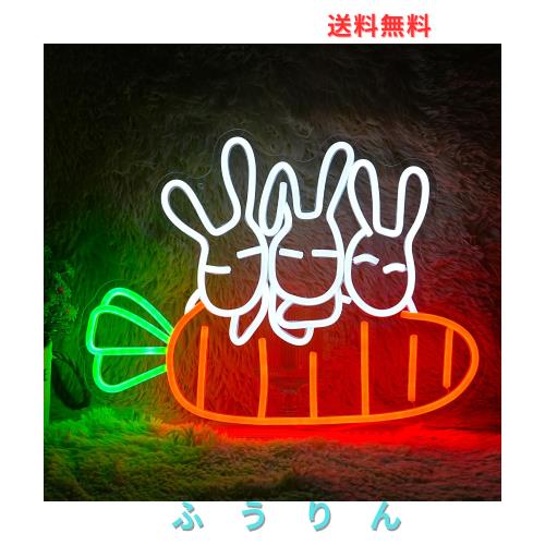 ウサギニンジンネオン サイン led壁装飾ウサギネオンライト にんじんネオン管 アートインテリアライトウサギネオン レストラン 子供室 パ