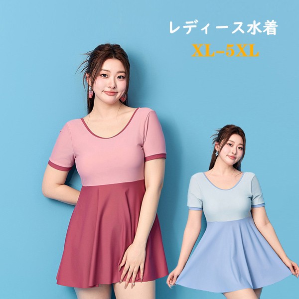 露出控えめ 韓国風 水着 レディース ワンピース 体型カバー 大きいサイズ 着やせ ブルー ピンク ぽっちゃり 女性 海水浴 温泉 オトナ女子 かわいい おしゃれ 温泉 ビーチ プール 海 水泳 ピンク ブルー LL-6L