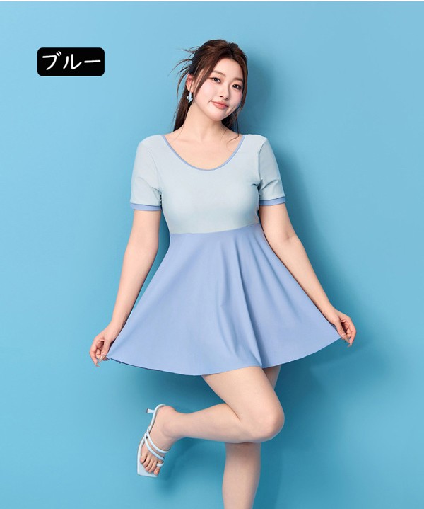 露出控えめ 韓国風 水着 レディース ワンピース 体型カバー 大きいサイズ 着やせ ブルー ピンク ぽっちゃり 女性 海水浴 温泉 オトナ女子 かわいい おしゃれ 温泉 ビーチ プール 海 水泳 mg005zuzuld