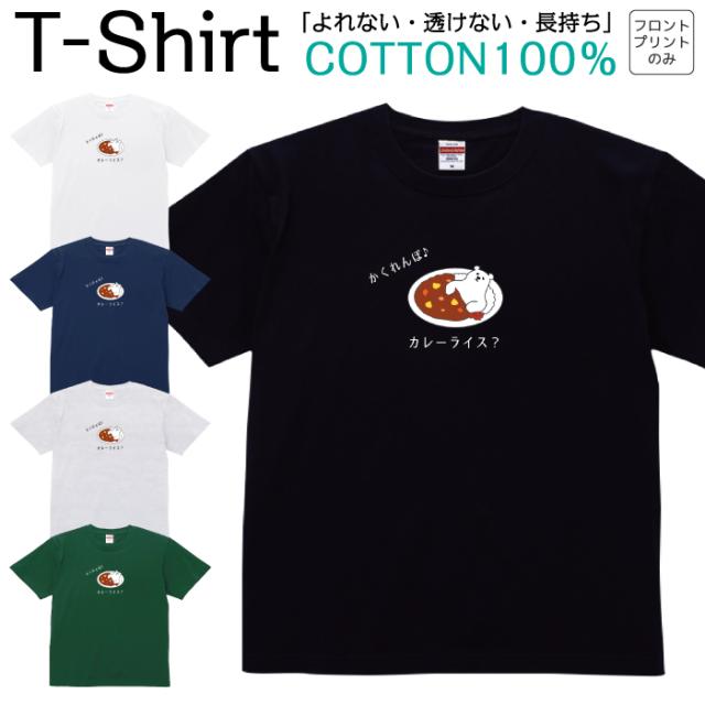 Tシャツ メンズ レディース シロクマ 熊 カレーライス かくれんぼ ジュニア キッズ 半袖 コットン100% 綿100% 100サイズ 120サイズ XXS XS S M L XL 5.6オンス zakka043-0915