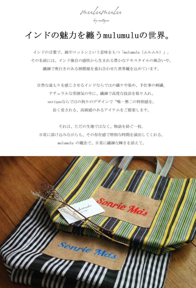 インドの伝統を感じる繊細な風合い、手仕事の刺繍にフォーカスを当てたantiqua発のブランド『mulumulu(ムルムル)』
