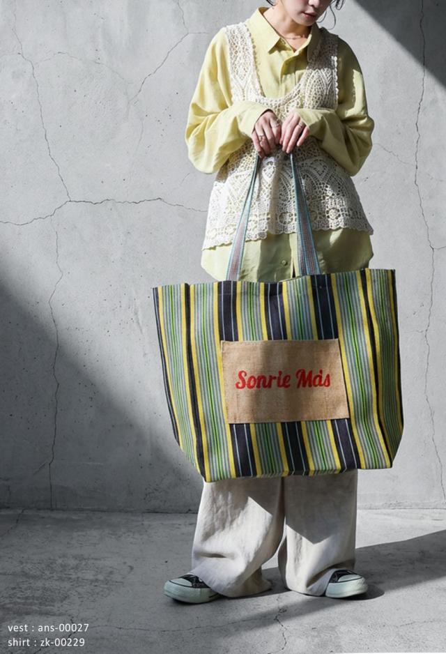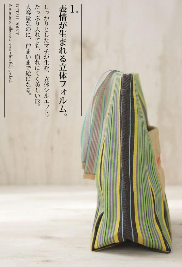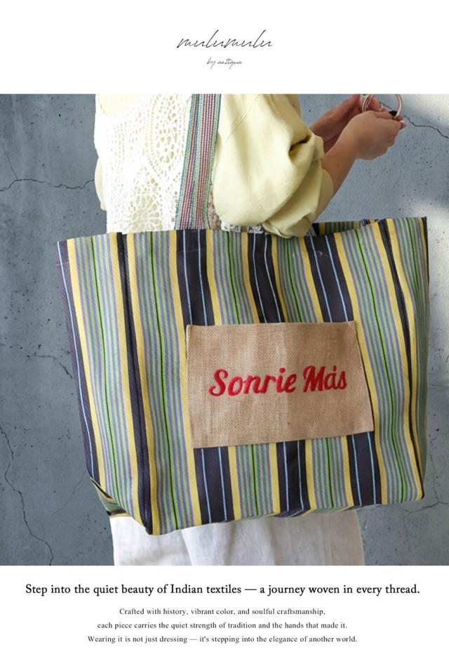 手織りの風合いと表情豊かなストライプ柄が魅力の、大容量トートバッグです。