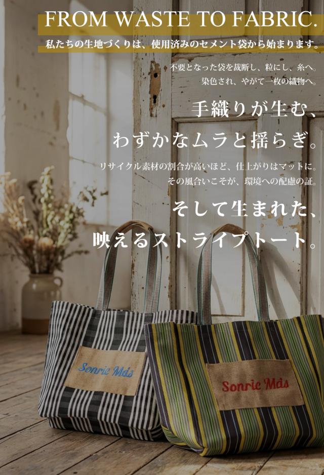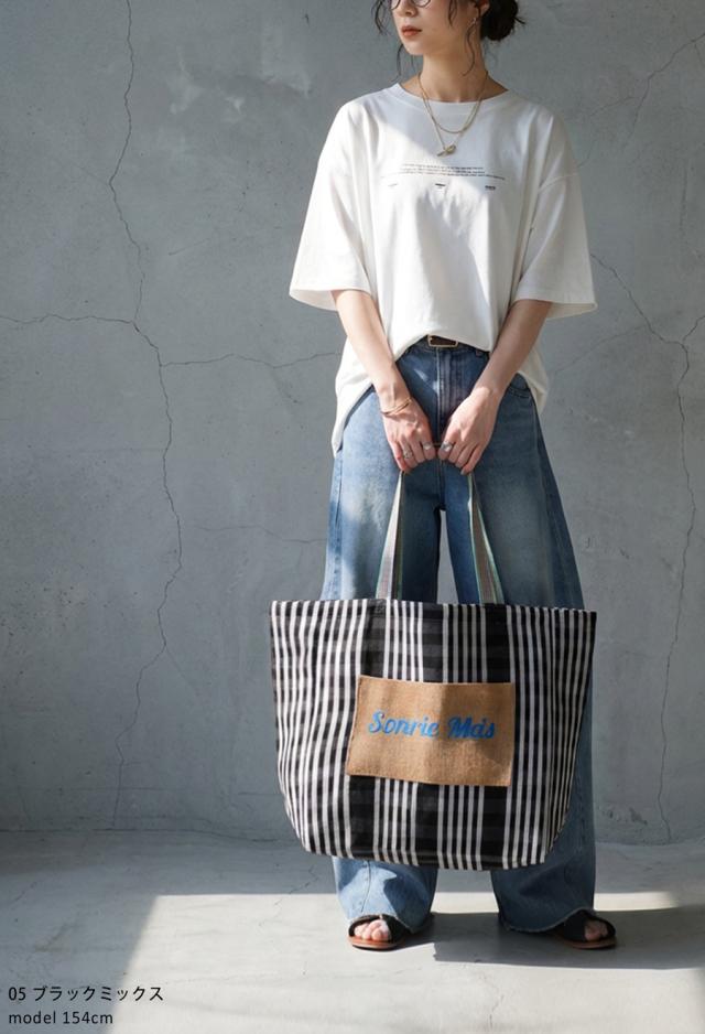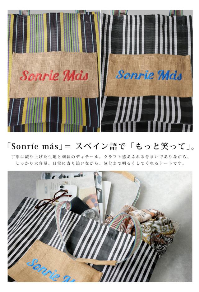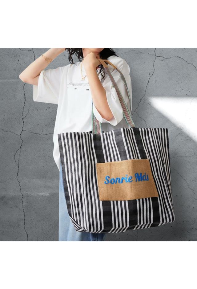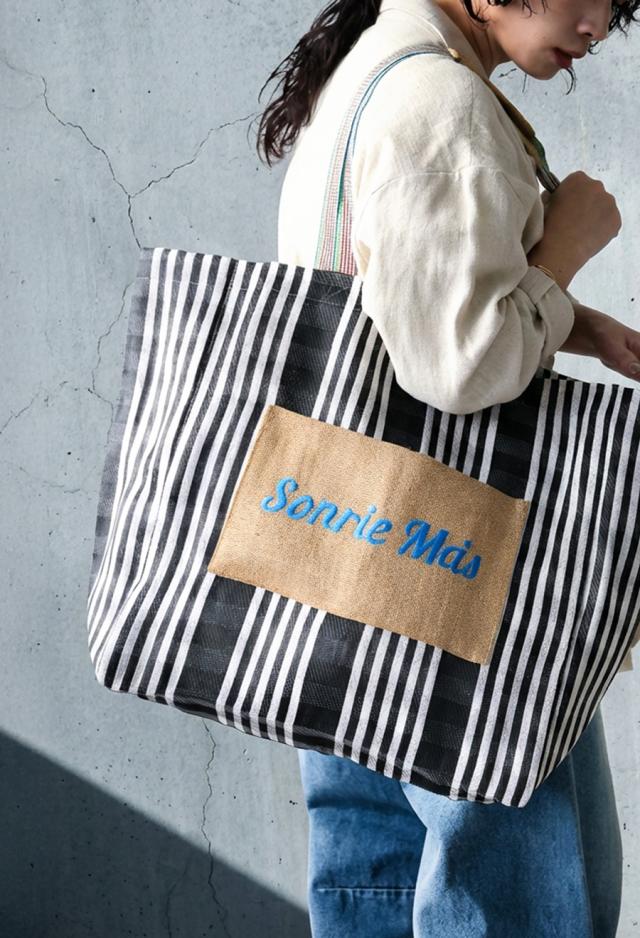 フロントの「Sonre ms(もっと笑って)」の刺繍ロゴがアクセントになり、持つだけでスタイリングの主役に。