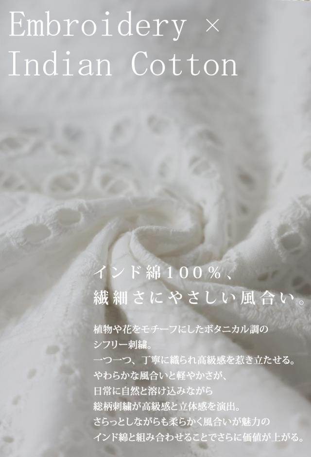 軽やかで通気性の良いインドコットン素材は春夏シーズンに心地よく、一枚で華やかな印象を与える主役級アイテムです。