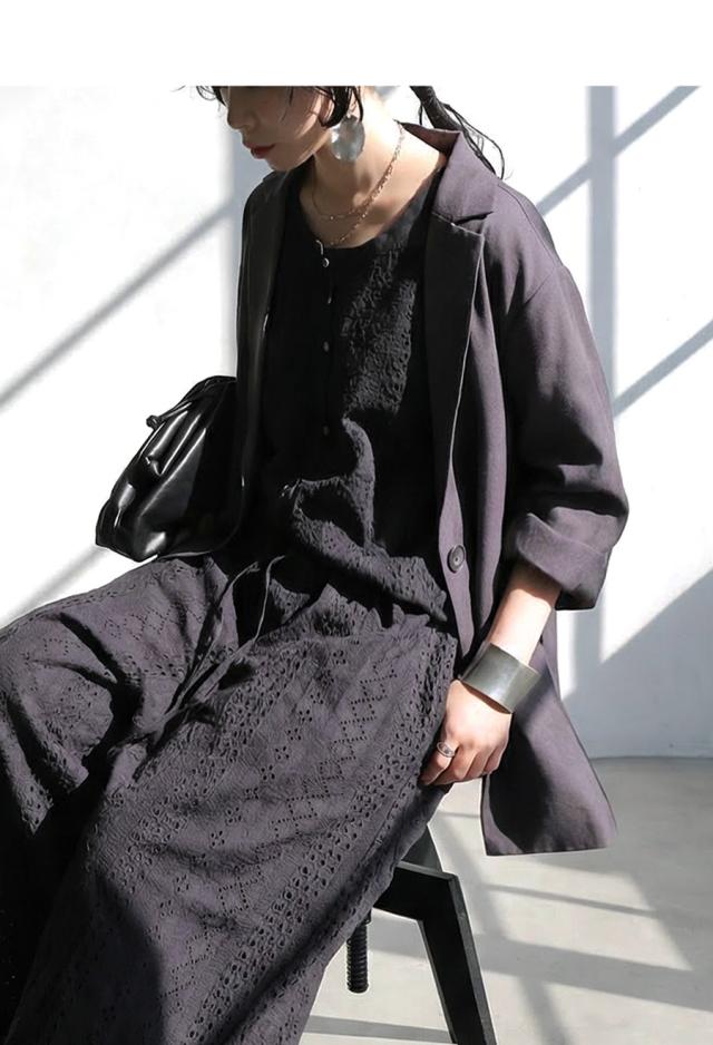 繊細な刺繍の柄が立体感を生み、奥行きのある表情を演出します。
