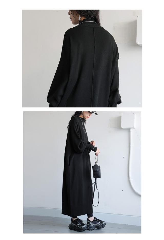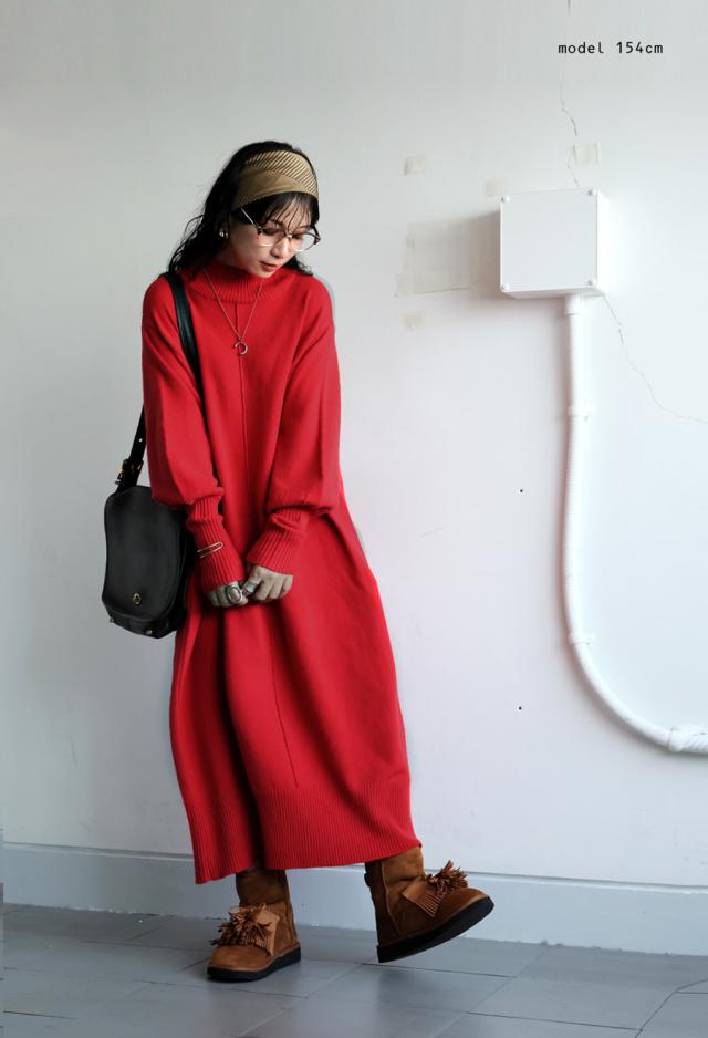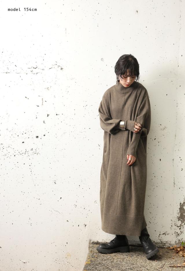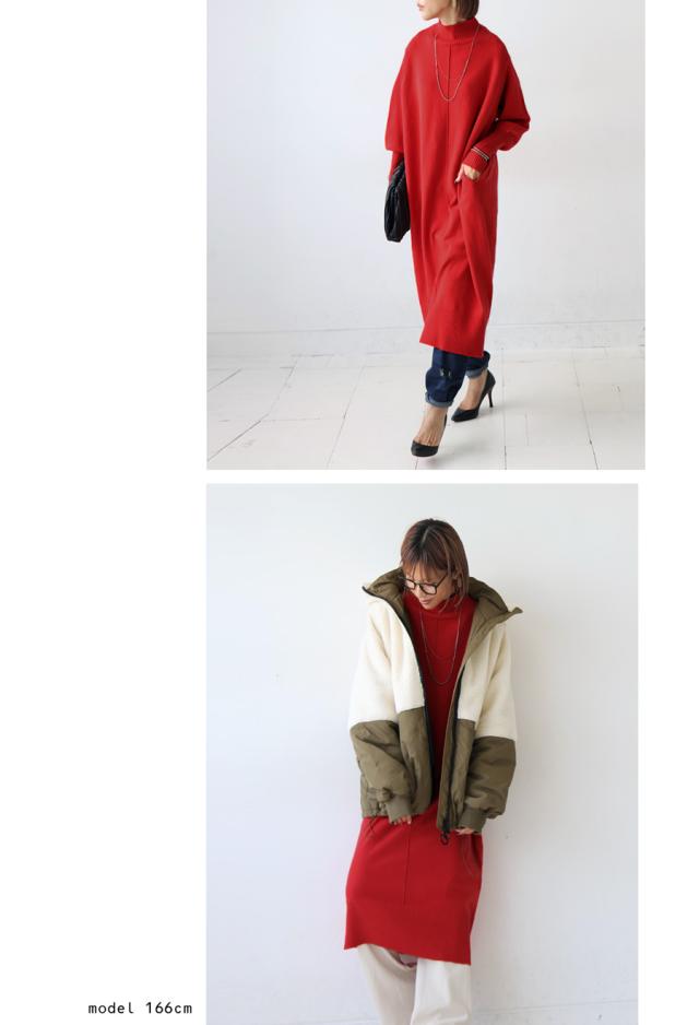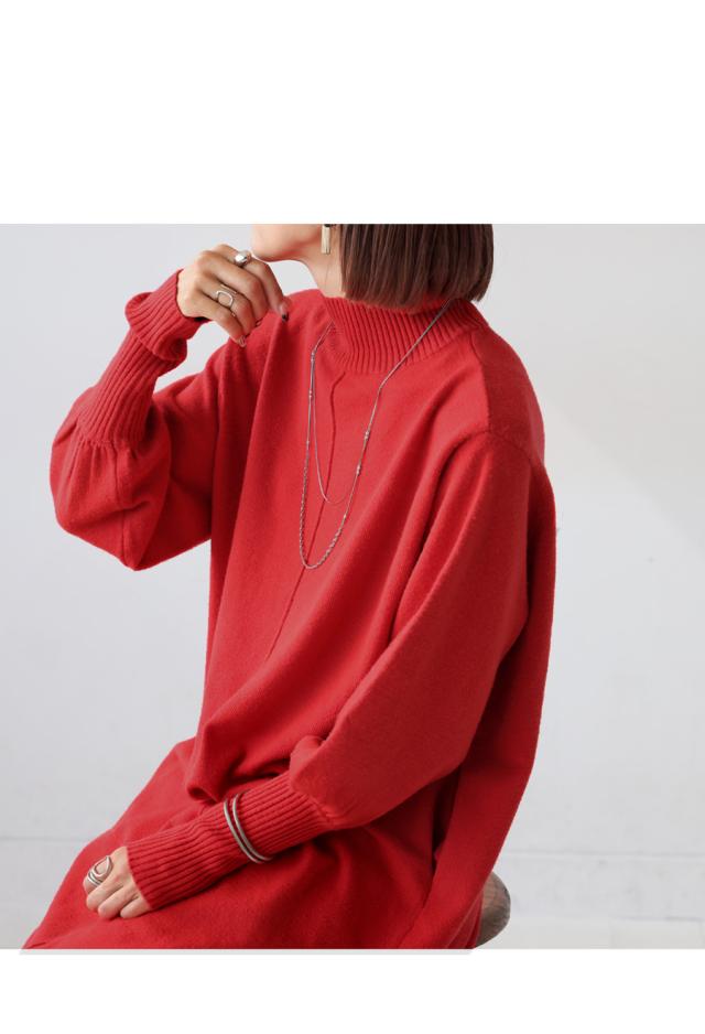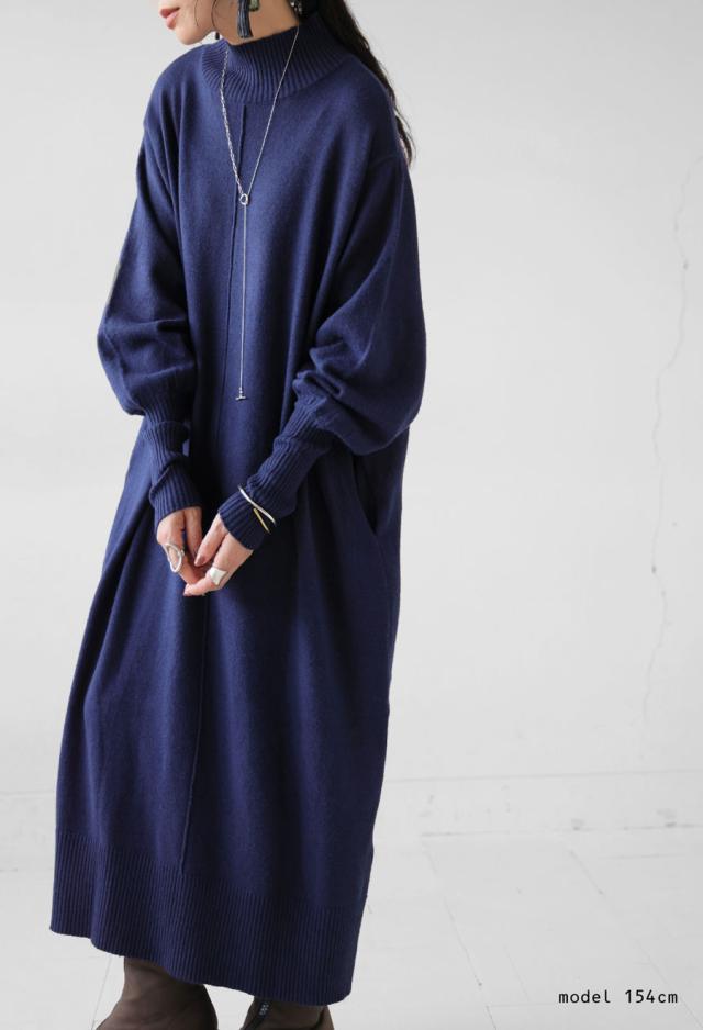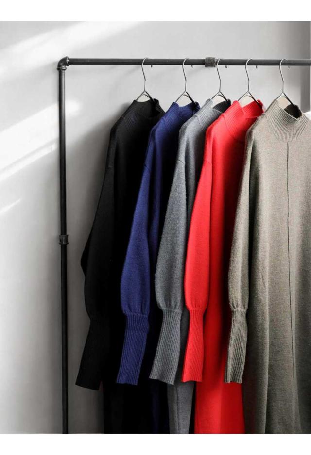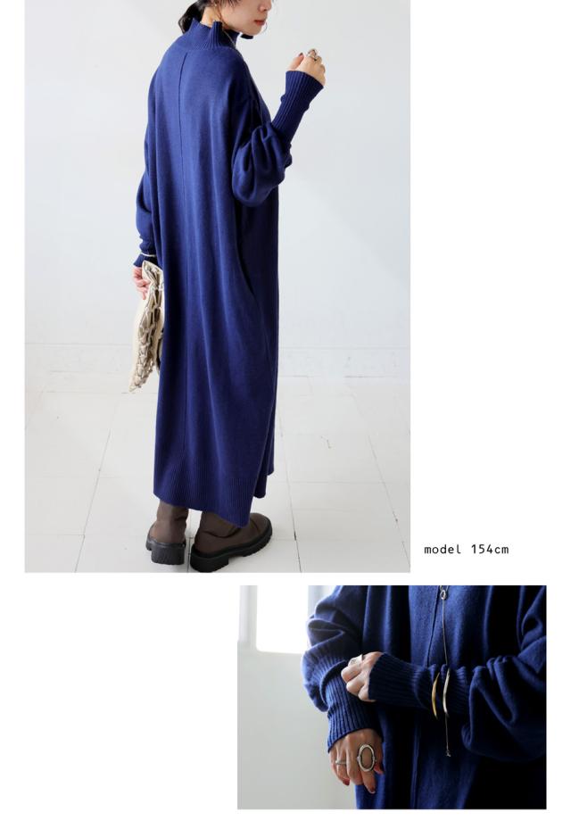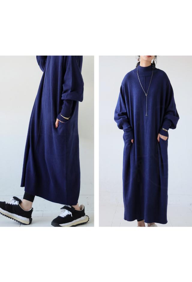 pn-00585 ワンピース ニット ワンピ 無地 長袖 タートルネック 縦ライン 体型カバー 小顔効果 マシンウォッシャブル カジュアル シンプル きれいめ ナチュラル ポケット付き リブ