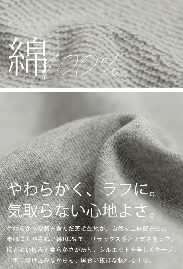 綿100%(コットン)の裏毛素材を使用し、肌当たりもやわらかく季節を問わず快適に着られます。
