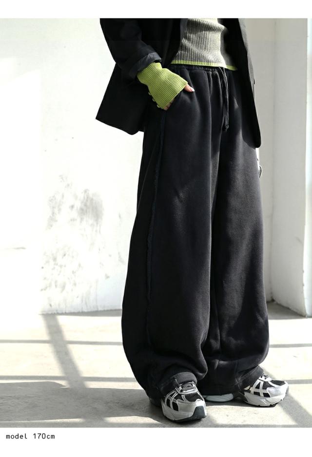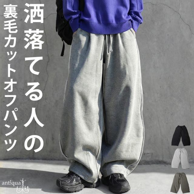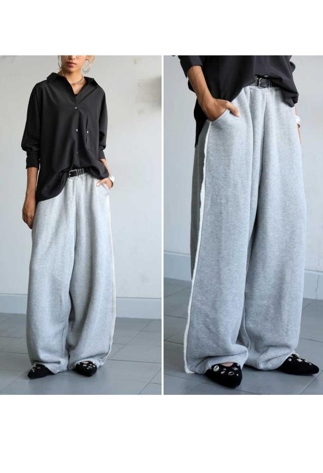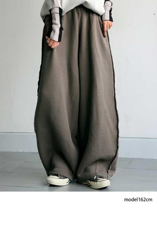 za-00275 ワイドパンツ スウェットパンツ バレルパンツ バレルレッグ ゆったり リラックス 裏毛 綿100 綿 コットン おしゃれ 無地 ヴィンテージ風 裾ダーツ ポケット付き