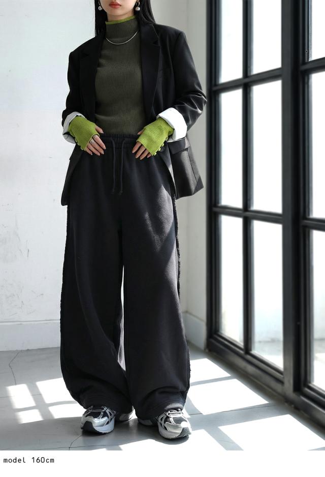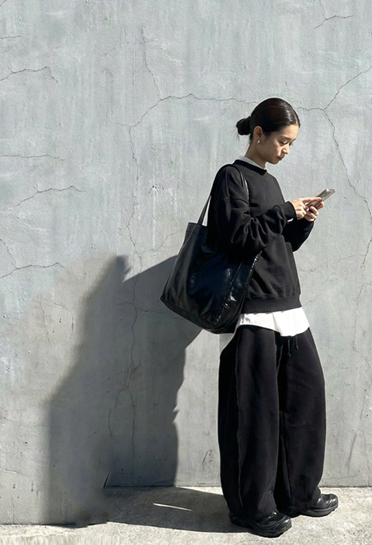 ポケット付きで実用性にも優れ、スウェットパンツのような気軽さも魅力。