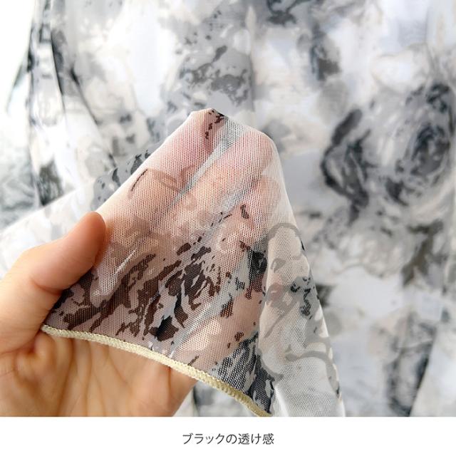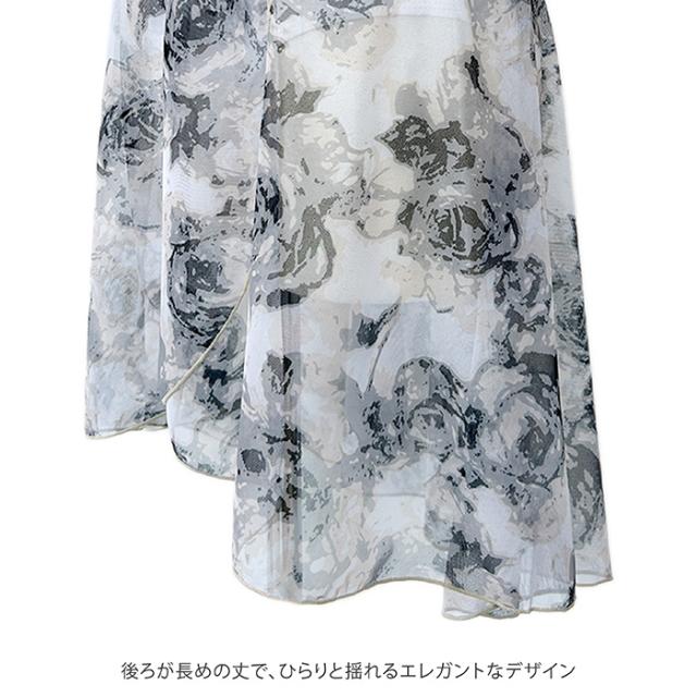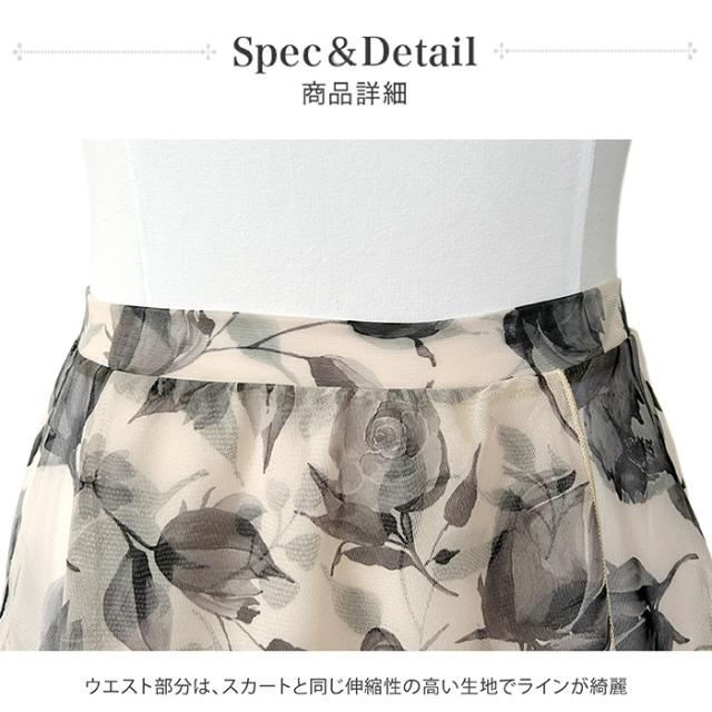 花柄がプリントされた、透け感のあるサンシャのスカートです。