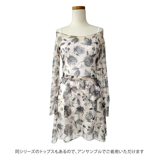 シンプルなレオタードも一気に華やかに!肌に馴染むカラーに花柄が華やかな、透け感美しいバレエスカートです。同シリーズのトップスと合わせても◎♪おとな デザイン