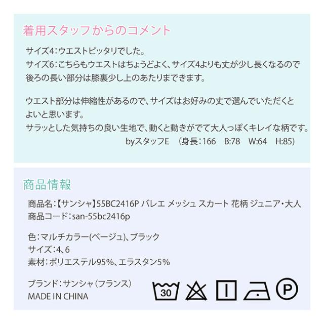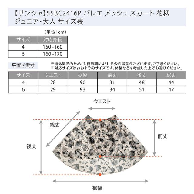 商品名:【サンシャ】55BC2416P バレエ メッシュ スカート 花柄 ジュニア・大人