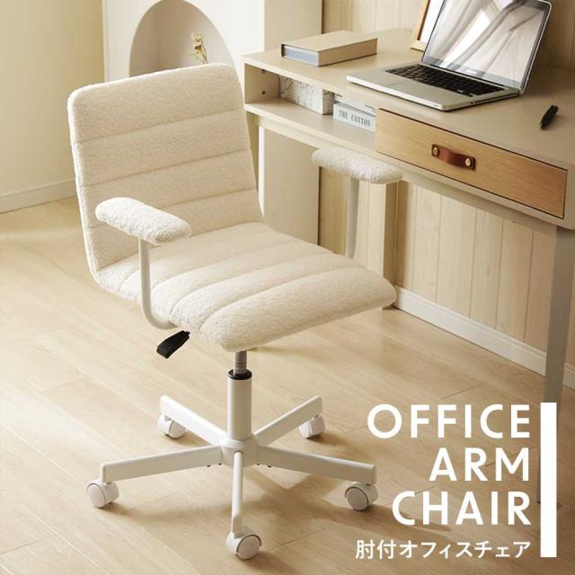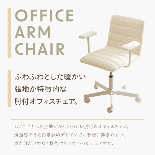 もこもことした張地がかわいらしいアームレスト付きのオフィスチェアです。