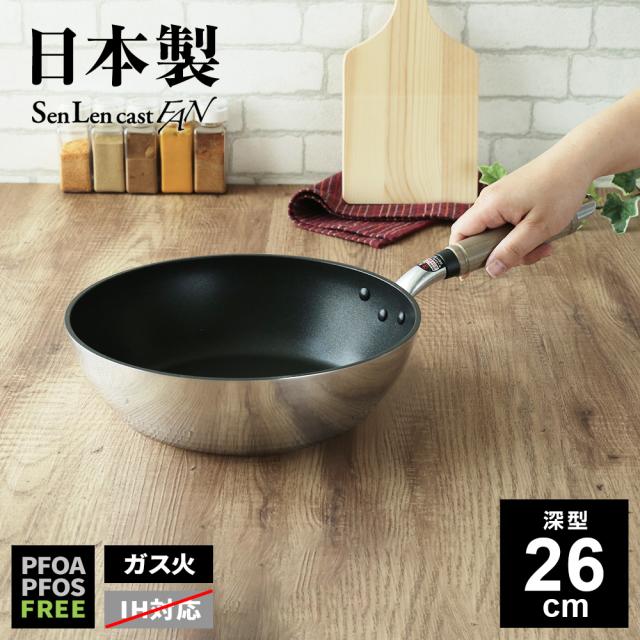 ガス火専用 日本製 センレンキャストFAN 深型フライパン 26cm | 鋳物 丈夫 ふっ素樹脂加工 北陸アルミ 長持ち 料理 炒め物 おしゃれ A-2818