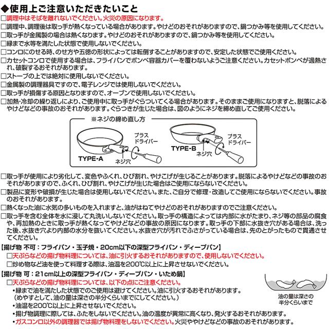 ご使用いただける熱源家庭用ガスコンロ・ラジエントヒーター・ハロゲンヒーター・エンクロヒーター・シーズヒーター ※火力を中火以下でご使用になるとフッ素樹脂塗膜が長持ちします。