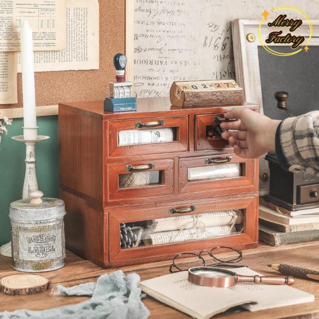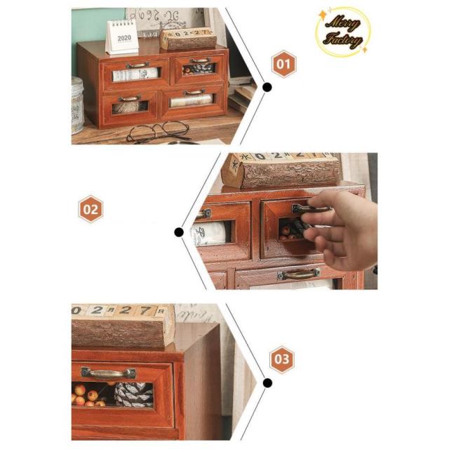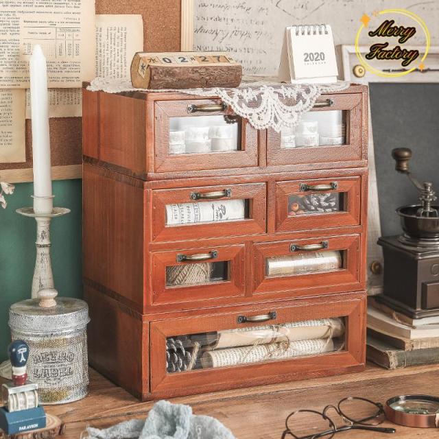 ミニチェスト 引き出し収納 木製 卓上 アンティークウッド アンティーク調 小物入れ 一段収納引き出し 重ね可 おしゃれ クラシック 卓上収納 机上