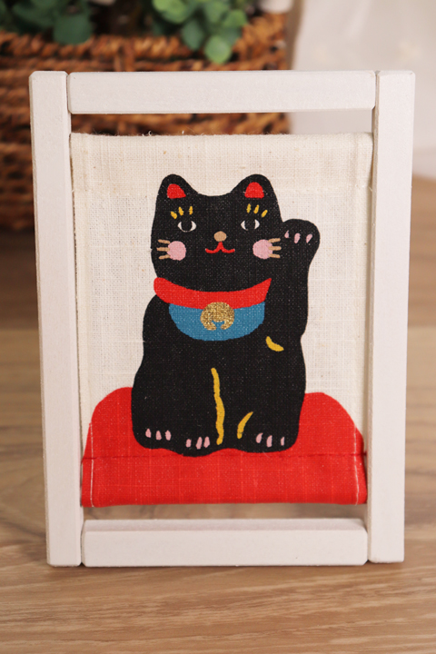 ミニ 木枠 タペストリー koyomiフレーム まねきねこ 黒 送料無料 (ネコポス) 縁起物 招き猫 麻 インテリア 和風 季節感 海外土産 京都 洛柿庵 ブラック 猫 ミニタペストリー