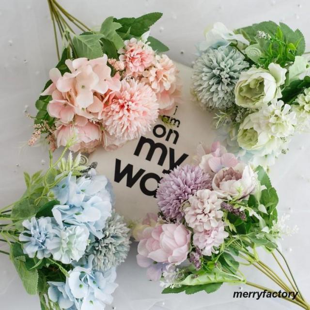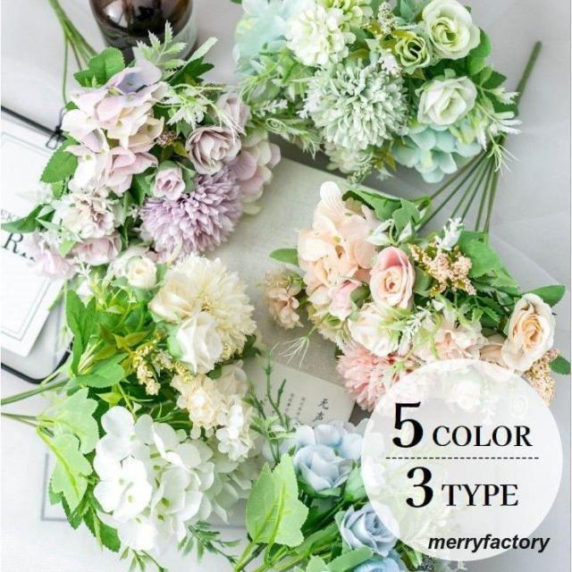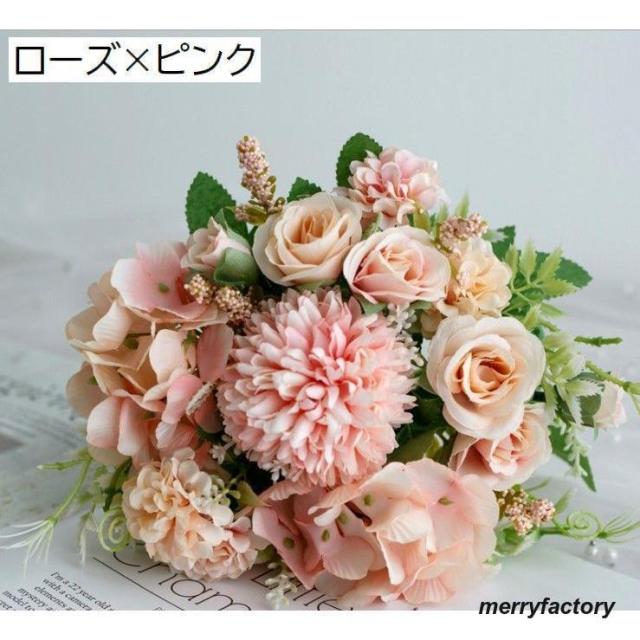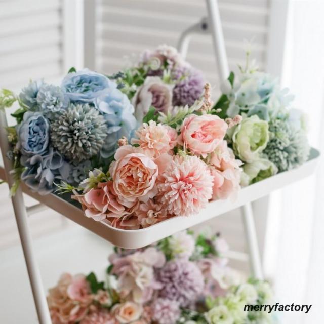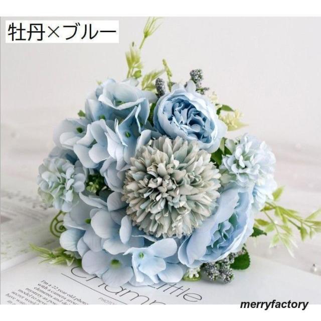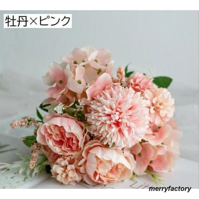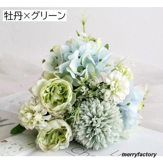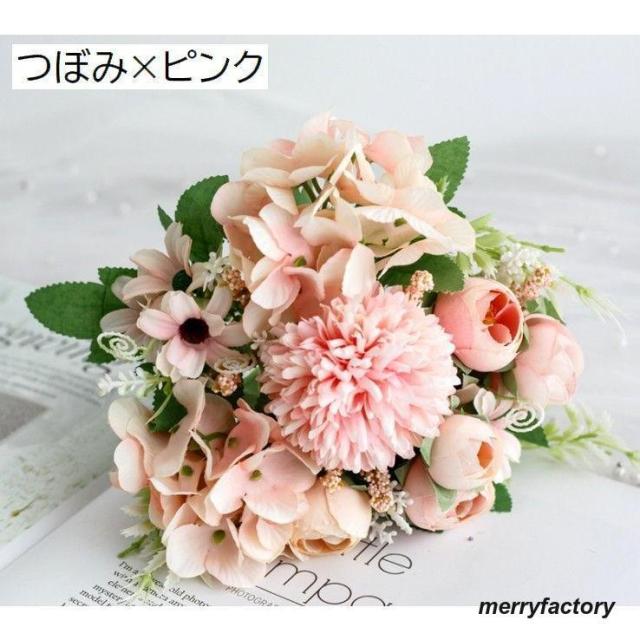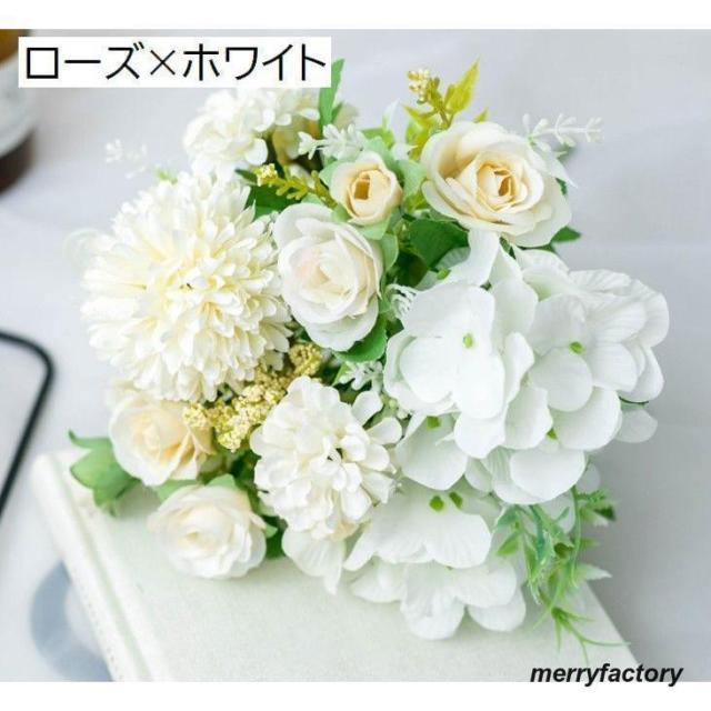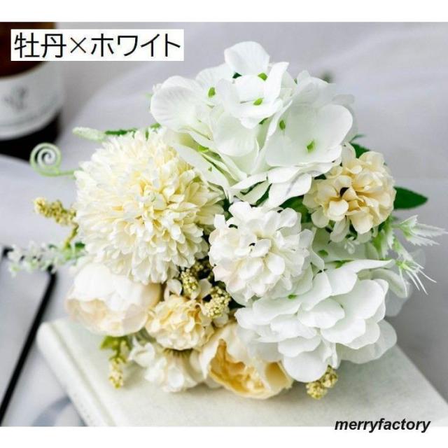 造花 ブーケ 花束 フラワーアレンジメント フェイクフラワー バラ 蕾 つぼみ 牡丹 飾り 装飾 インテリア アーティフィシャルフラワー 綺麗 結婚祝