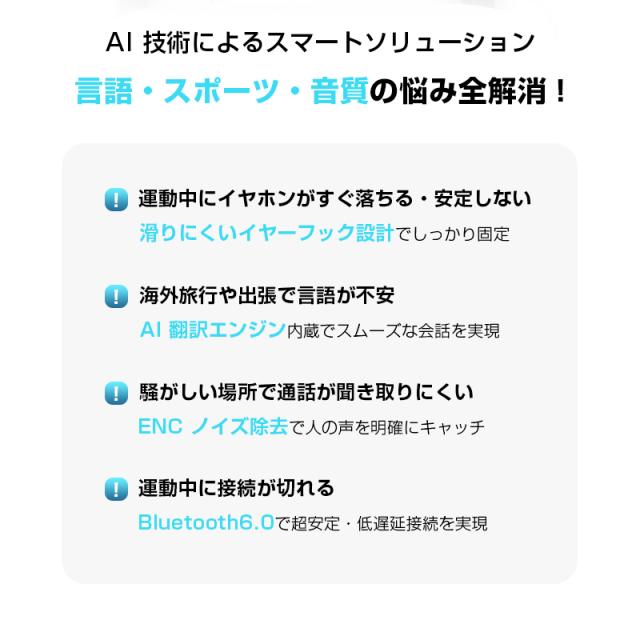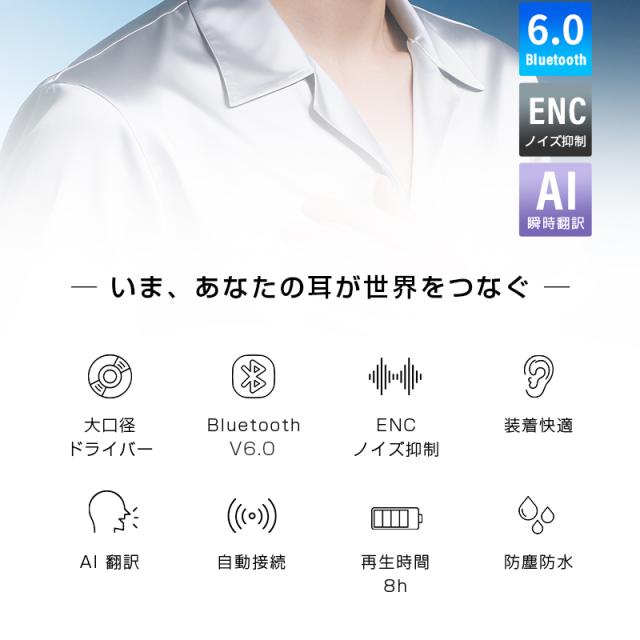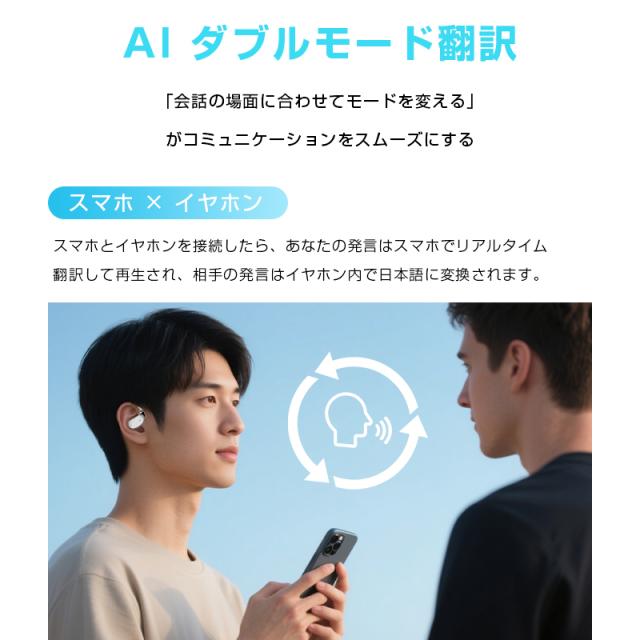 【期間限定89%OFF&P5倍で3,582円!】AI翻訳ワイヤレスイヤホン ヘッドセット 115言語対応 高精度 Bluetooth6.0 耳を塞がない 左右分離型 ENC ノイズキャンセリング 2025最新 HiFi高音質 軽量 超小型 PC iPhone16/15 iOS Android Windowsに対応【PL保険加入済み製品・安心】