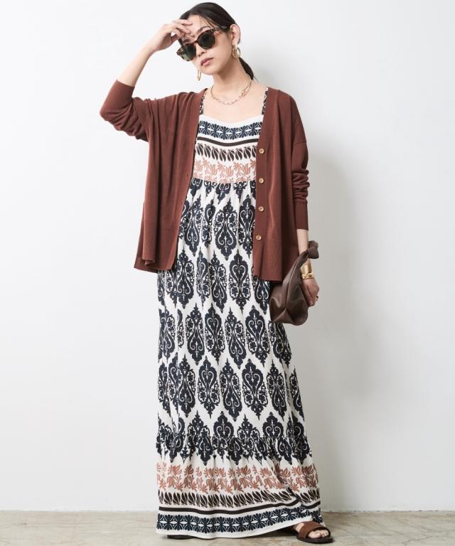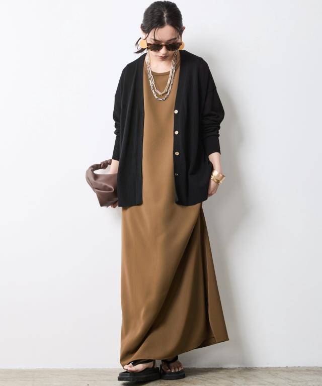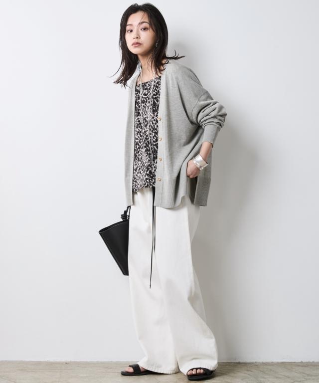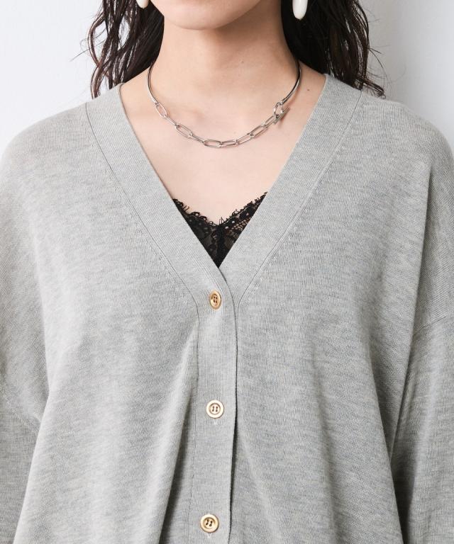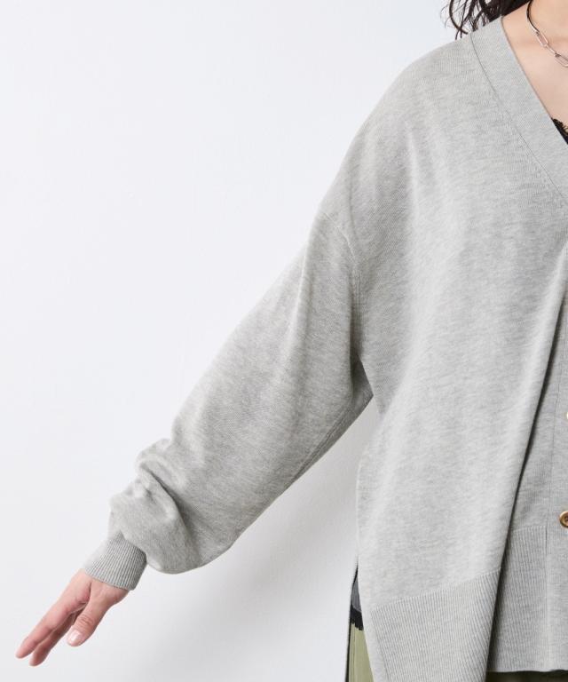 こなれ感と上質な素材を使用した大人のための洗練されたニットカーディガン。 ■デザイン さらっと羽織るだけでいつもの装いを格上げ、上質な素材感と計算されたシルエットが魅力。 ゆったりしたオーバーサイズのシルエットがリラックス感とトレンド感を演出。 ドロップショルダーとサイドスリットが女性らしい柔らかな印象を与えます。 深めのVネックはインナーとのレイヤードを楽しめるだけでなく、デコルテをきれいに見せてくれます。 ■素材 綿レーヨンの強撚糸を使用。 夏にうれしい肌離れ良くさらっとしたタッチ、さらに落ち感があるので着やせ効果も期待できる素材。 ■おすすめのスタイリング シンプルなデザインなのでどんなスタイルにもマッチします。 色違いでほしくなるニットカーディガン。