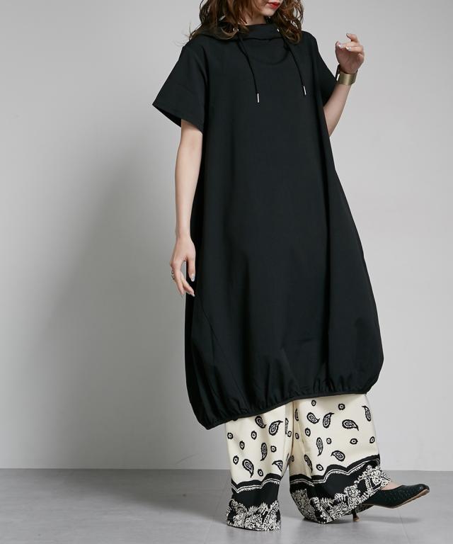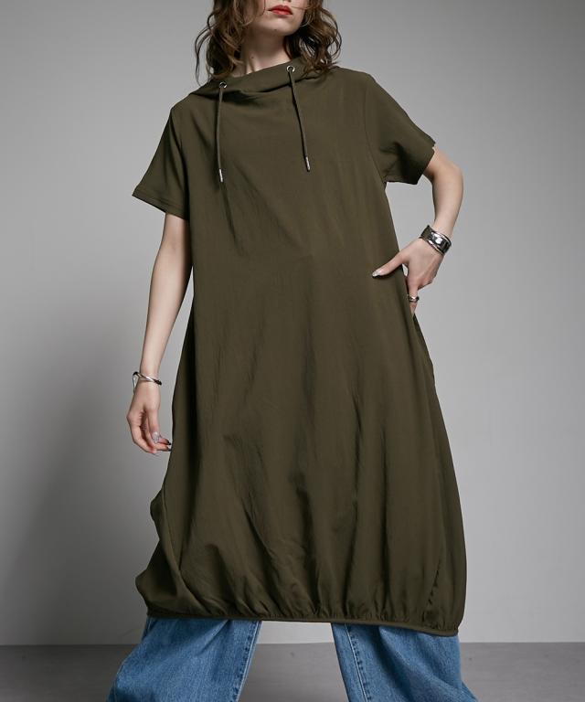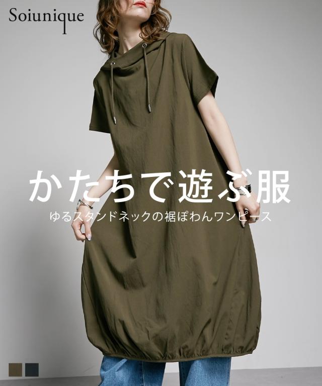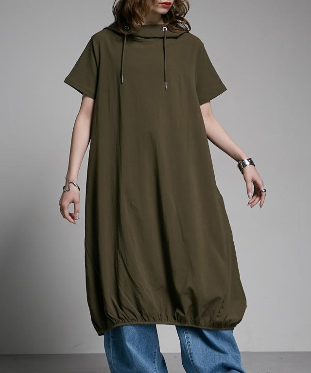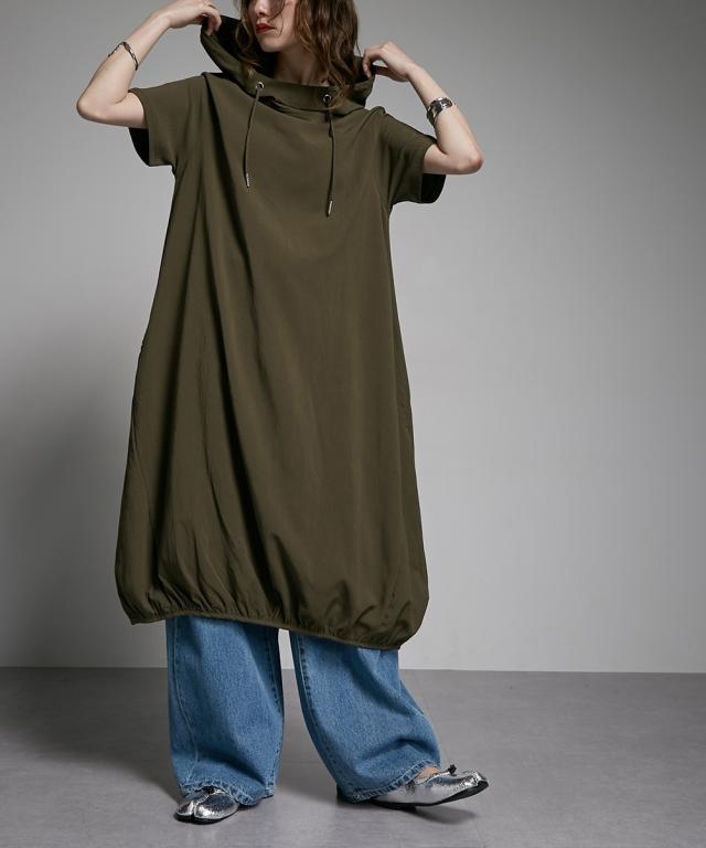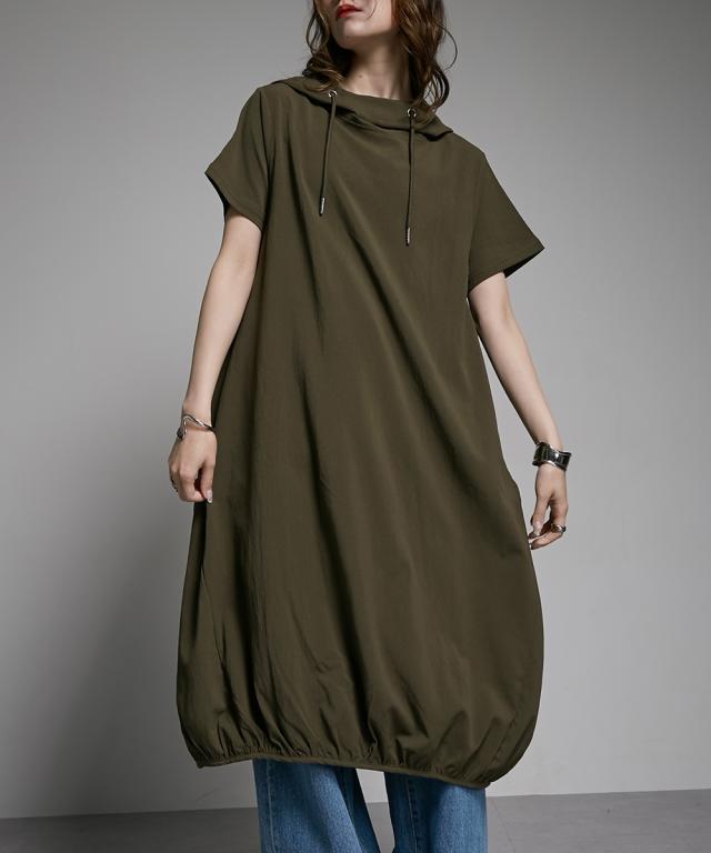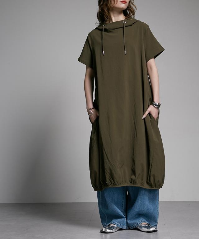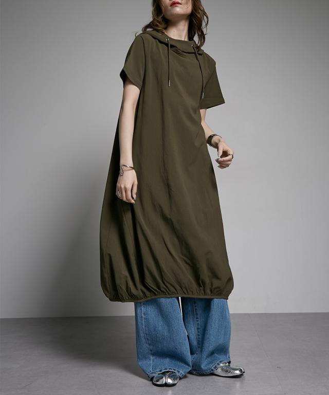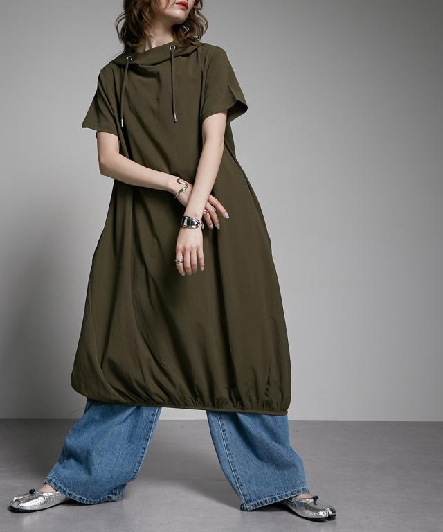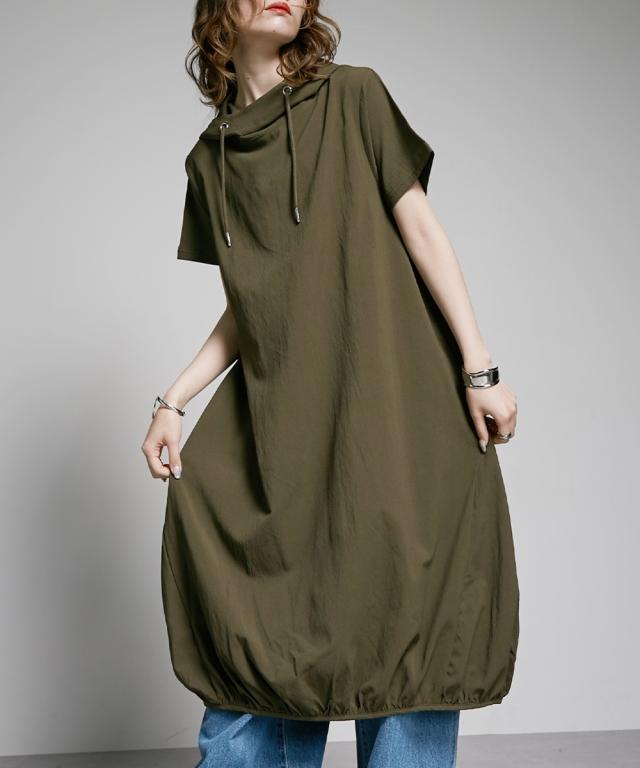 フード付き裾バルーンスタンドネックワンピース [Soiunique]