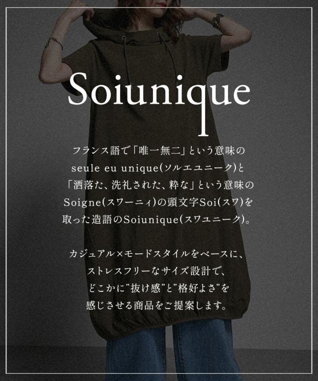 ■デザイン ・立ち上がりのあるネックラインが輪郭を引き締める ・裾に丸みをつけた立体フォルムで構築的なシルエット ・ゆったりとした着用感ながら、計算された落ち感が抜けを演出 ・ドローコード付きで首元の印象を変化できる ■素材 ・わずかにハリのある軽やかな素材 ・ナチュラルなシワ感がこなれた表情をプラス ・シーズンレスに活躍する軽量生地 ■おすすめのスタイリング ・ワイドデニムと合わせたレイヤードで奥行きあるバランスに ・タイトなボトムと合わせればすっきりと縦ラインを強調 【Soiunique/スワユニーク】唯一無二のアナタへ——— カジュアル×モードスタイルをベースに、 ストレスフリーなサイズ設計で どこかに”抜け感”と”格好よさ”を感じさせる商品をご提案。 体型カバーやスタイルアップも叶えつつ、 コンプレックスを個性にして自分のスタイルを貫く唯一無二のアナタへ。