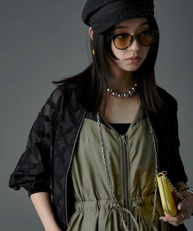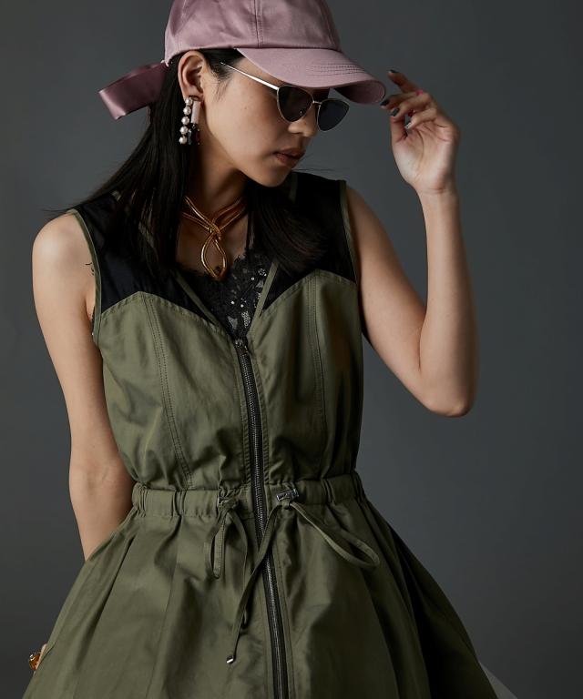 シアー切替フロントジップワンピース GEVS.