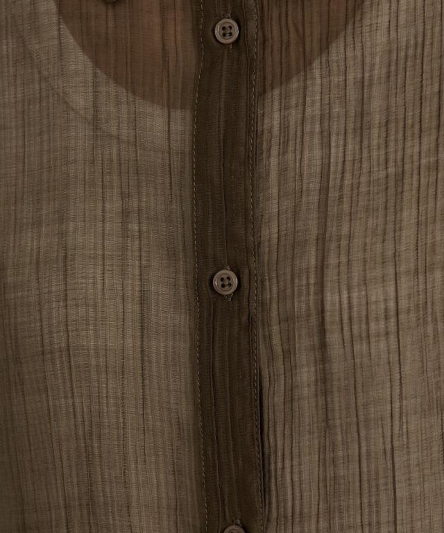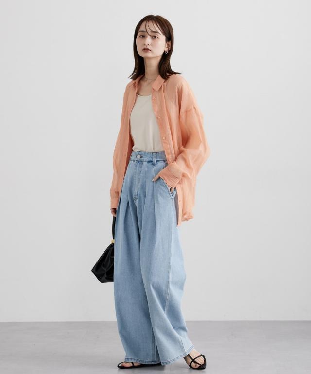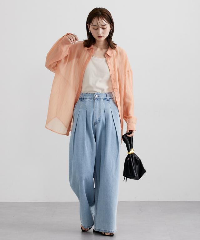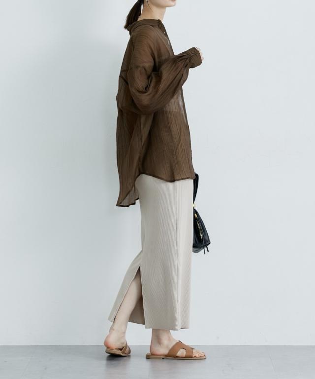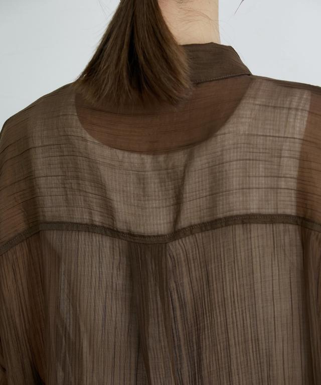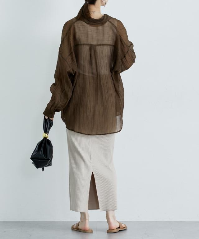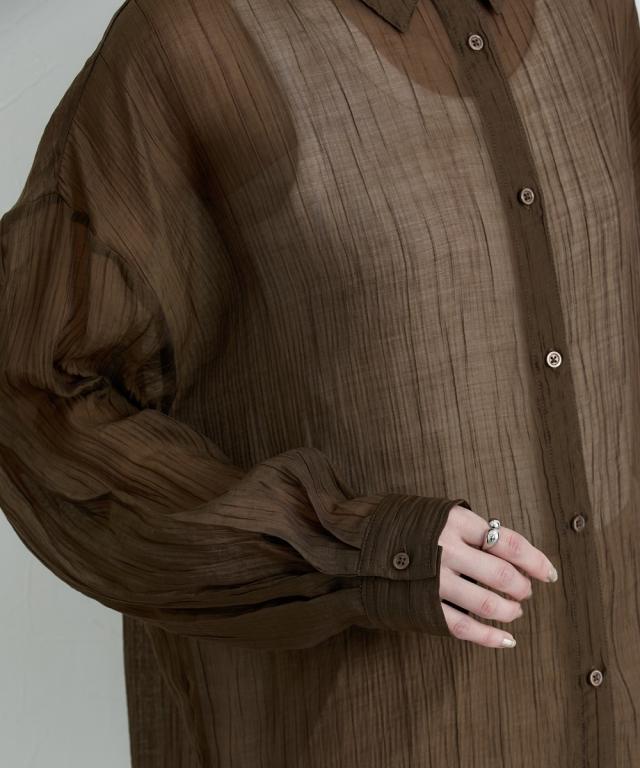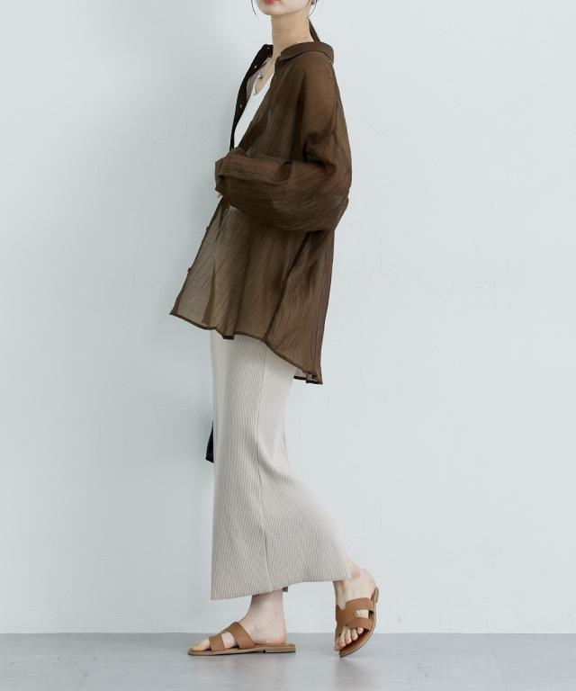 ■デザイン ゆるシルエットが今年らしいシアーシャツ。涼し気なドビー素材で秋にかけて着まわせる便利なアイテム。はおるだけで抜け感のあるコーデが即完成するおすすめのアイテムです。 ■素材 上品な透け感のシアードビー生地を使用。ストライプ柄の地模様になっているのでしわもめだちにくくお手入れしやすい!ほんのり上品な光沢感もあるのでカジュアル過ぎないのもポイントです。 ■おすすめのスタイリング 長袖のレギュラーシャツタイプなので、今年らしくシアー感を活かしたコーデがおすすめ。キャミソールにさっと羽織ったり、ワンピースの羽織にもおすすめ。オンからオフまで着まわせるマストバイなシャツです。