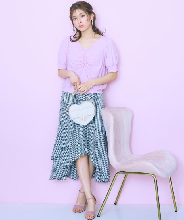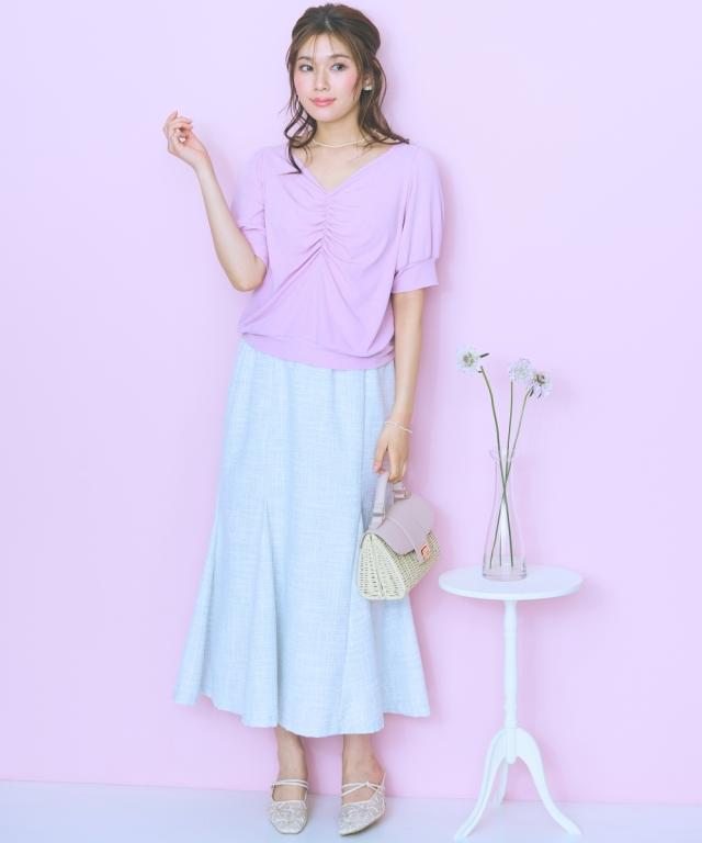 ふんわりパフスリーブとシャーリングデザインが大人可愛いトップス。 ■デザイン ・上品な印象のハートネックデザインで、デコルテを美しく見せてくれます。 ・すっきりと二の腕もカバーしてくれる丈感に設定。 ■素材 さらっとした着心地の柔らかい素材。 ■おすすめのスタイリング カジュアルながらも女性らしさを演出してくれるので、オフィスにも、お出かけにも 着回し力抜群で、どんなボトムスにも合わせやすいのが嬉しいポイント。