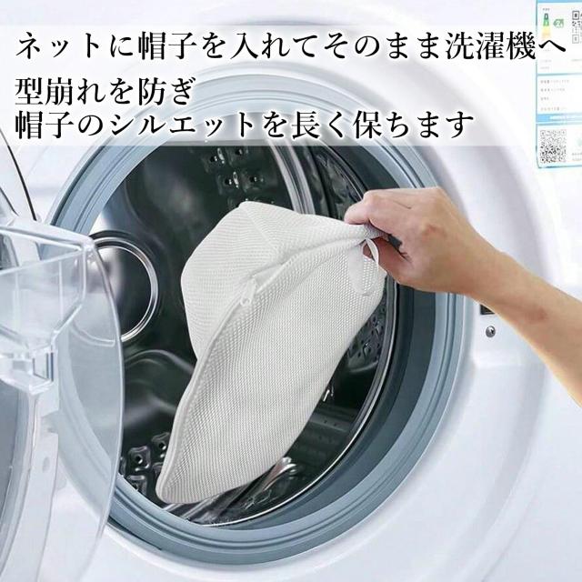 帽子をネットに入れてそのまま洗濯機へ。手洗いの手間なく、清潔に保てます。毎日使う帽子のお手入れがぐんとラクに。