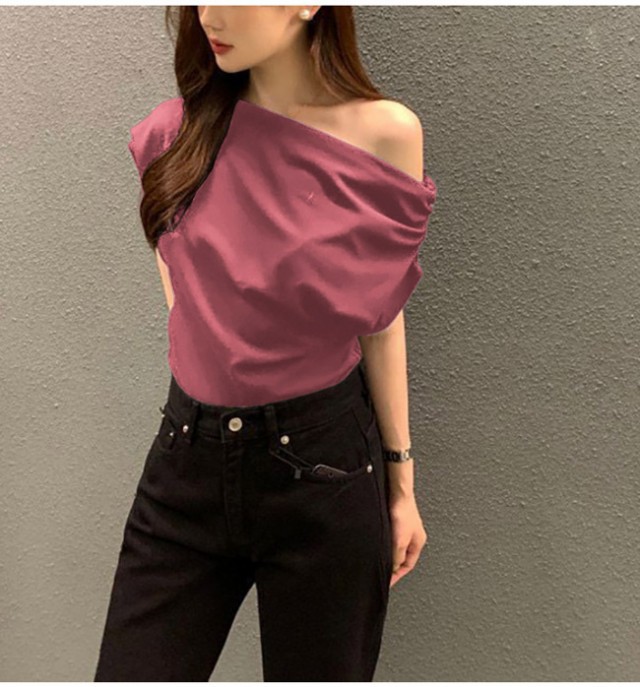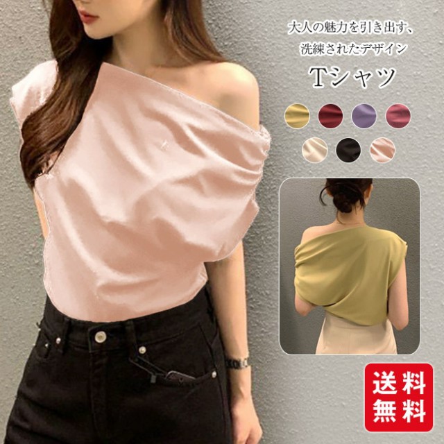 夏新作 Tシャツ 半袖 肩出しTシャツ レディース ゆったり スリム効果 インナーシャツ オフショルダー トップス