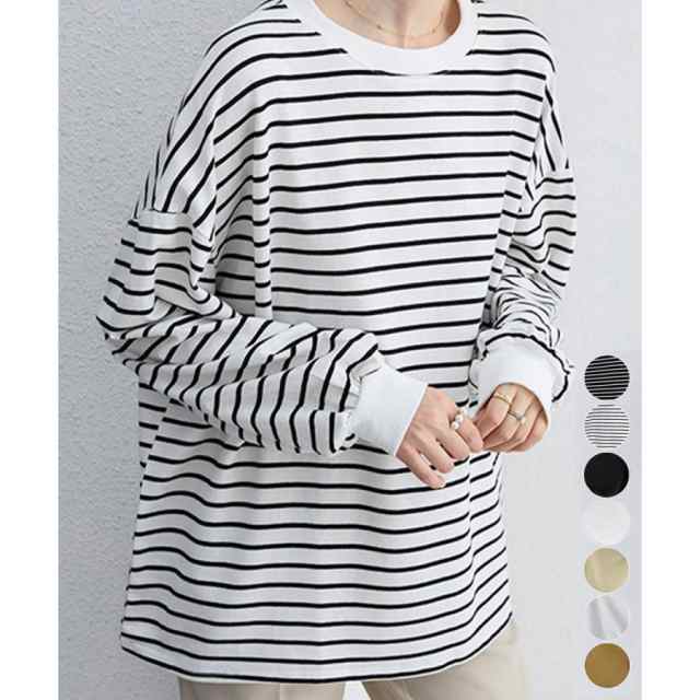 ”着回し自由自在”、ラウンドネックボーダー&無地ロングTシャツ