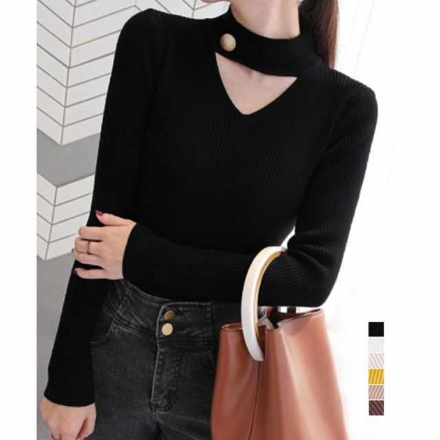 チョーカー風 リブニット レディース ニットカットソー セーター セクシー プルオーバー おしゃれ きれいめ【ゆうパケット可】