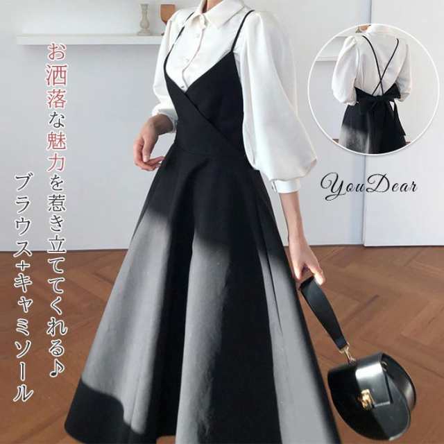 ワンピース セットアップ レディース ロング丈 ワンピース2点セット ドレス 長袖 キャミソールワンピース ワンピース 2点セット トップス ブラウス