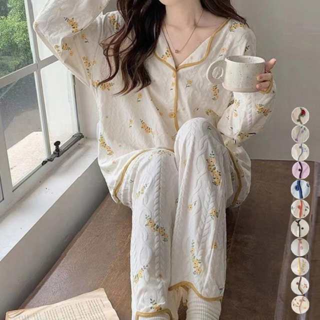 大人可愛い ルームウェア 修学旅行 パジャマセットアップ 総柄 ラウンジウェア リラックス ナイトウェア 春秋冬 寝巻き