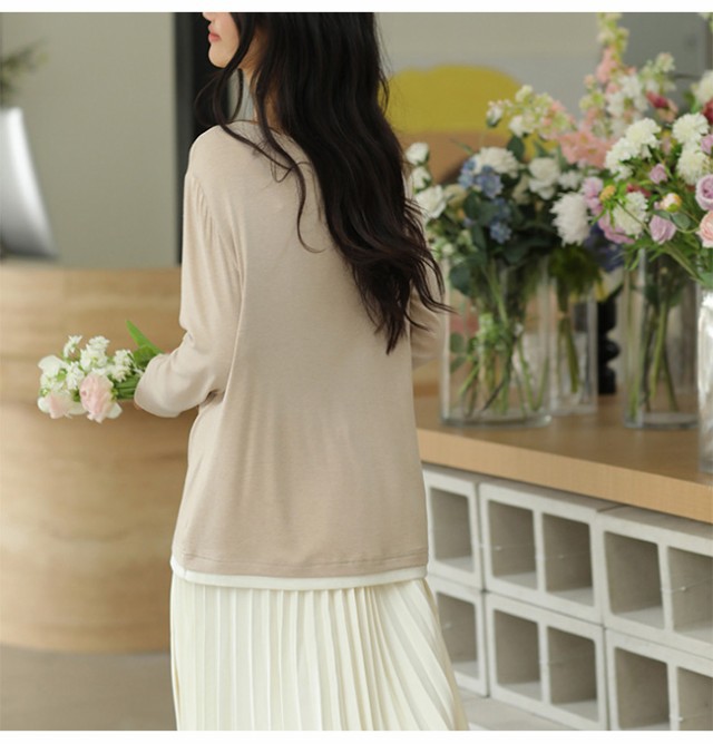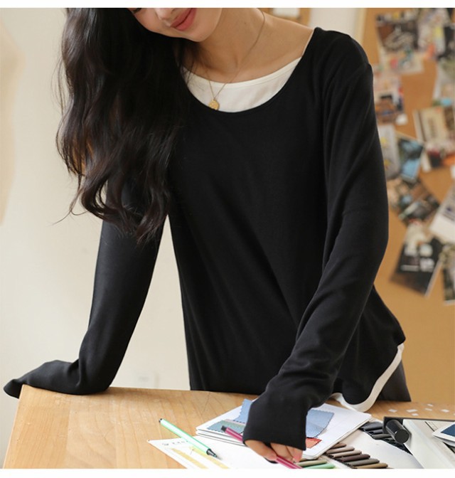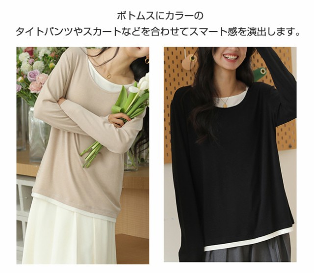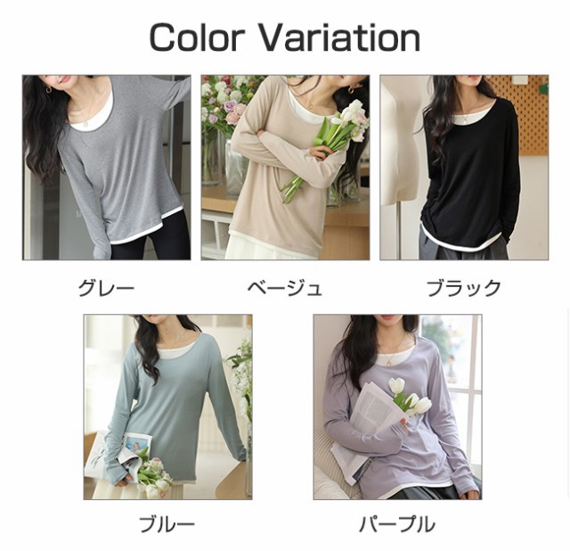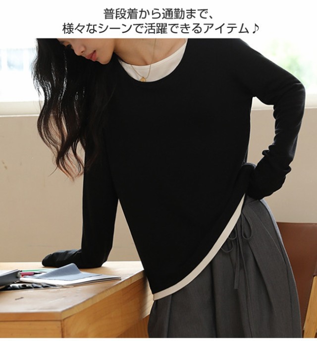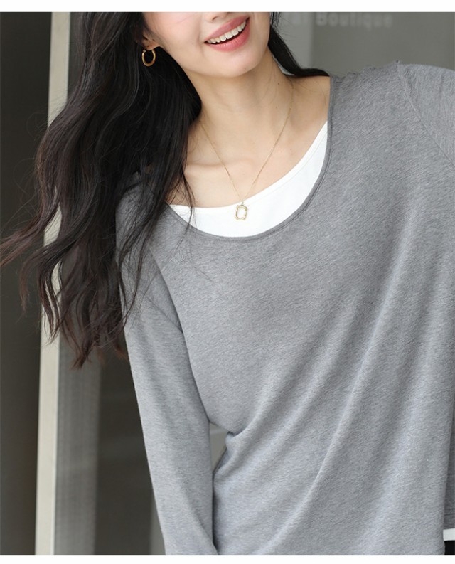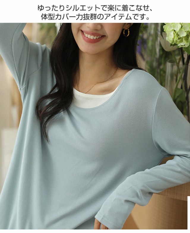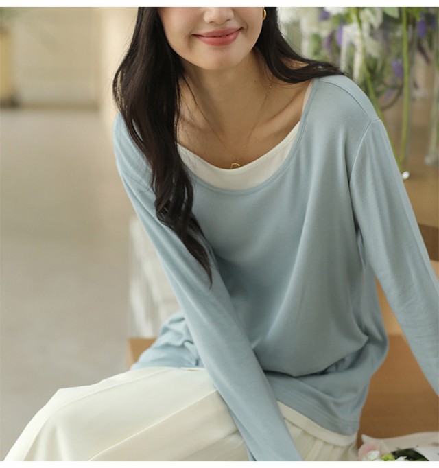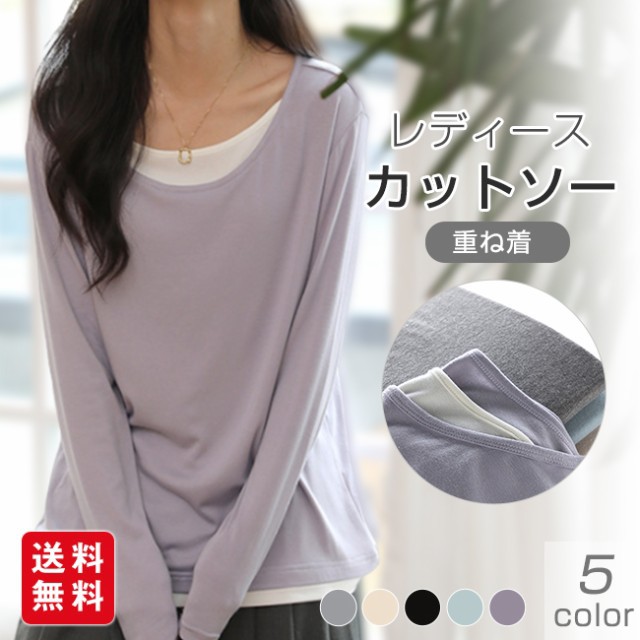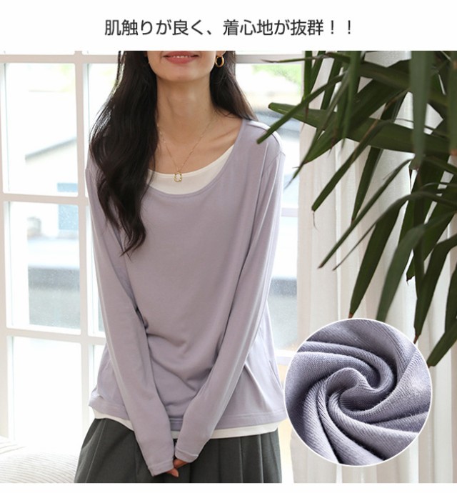 夏新作 カットソー クールネック レディース インナー 重ね着 薄手 長袖 トップス 無地 着痩せ 体型カバー ゆったり 春秋