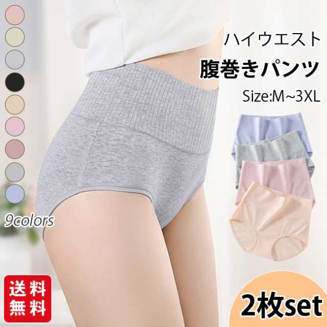 2枚セット 腹巻きパンツ レディース ショーツ ハイウエストショーツ レディースショーツ 無地 リブ 女性 下着 深め 深履き