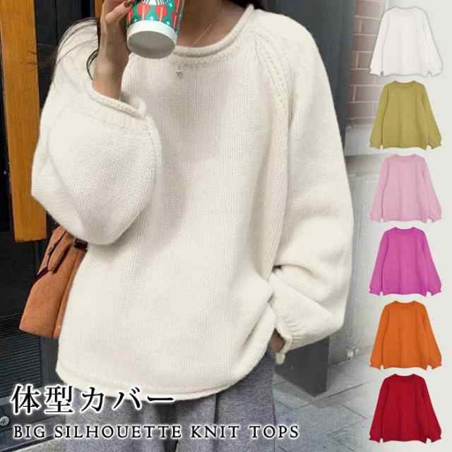 ニットトップス レディース 春 夏 春夏 ニット 長袖 無地 セーター ゆったり アイボリー イエロー ピンク チェリーピンク オレンジ レッド 20代 送料無料