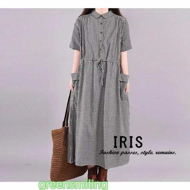 シャツワンピース ギンガムチェック ロング丈 半袖 長袖 レディース ゆるい 体型カバー カジュアル 20代30代40代50代60代 森ガール 大人可愛い
