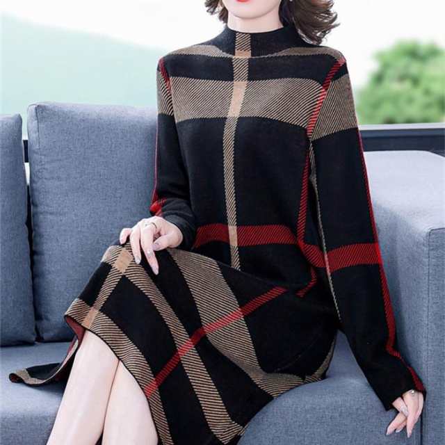 連携キーワード:ニットワンピース 40代 オシャレ ニットワンピース ロング 秋冬 ニットワンピース チェック柄スカート ニットインナー セーター ゆったり 韓国風 大人 上品 30代 50代