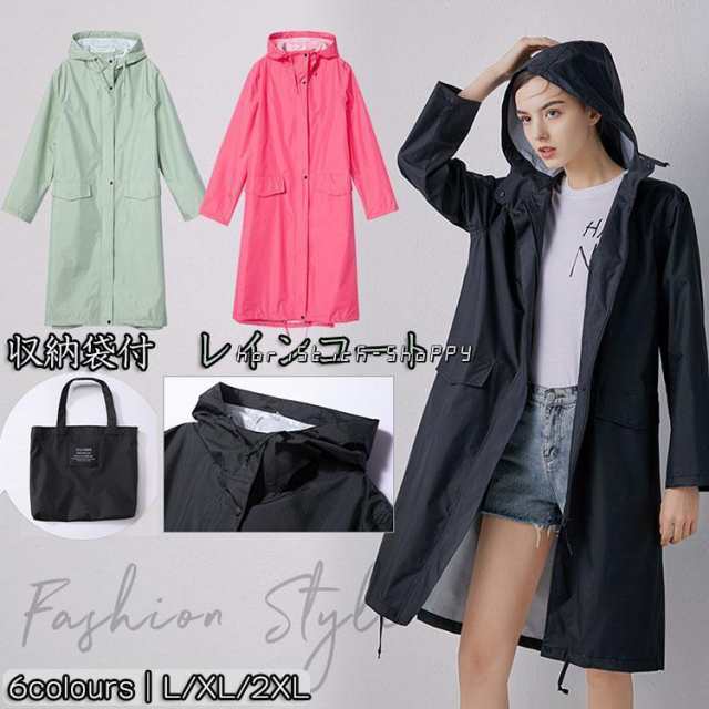 ワークマン レディース レインコート ロング丈 自転車 リュック対応 レインウェア フード付き 通学 防風防水 雨具 梅雨対策 収納袋付 かわいい レインポンチョ