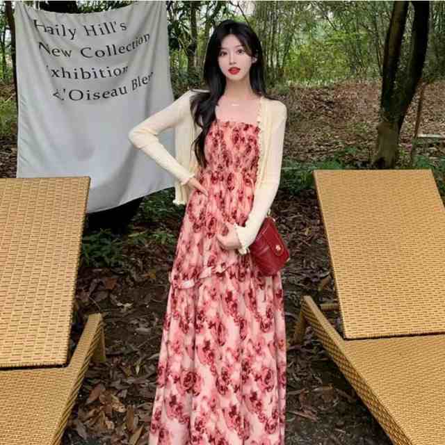 キャミソールワンピース 花柄 ノースリーブ ロングワンピース ミモレ丈 薔薇柄 バラ リゾートワンピース レディース ワンピース フレアワンピース aラインワンピ